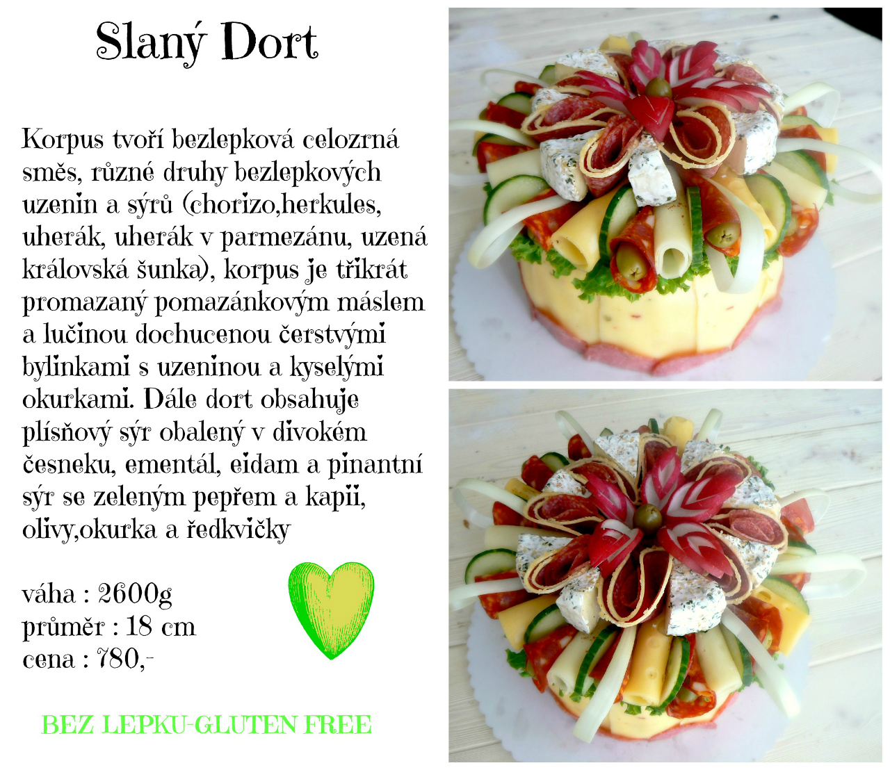 V této galerii najdete různé druhy bezlepkových slaných dortů. Dorty, které jsou v galerii byly přímo na objednávku a ceny jsou opravdu pouze orientační, protože každý klient má jiné požadavky na složení dortu. Slané bezlepkové dorty je možné vytvořit i patrové, či čtvercové. Obecně však platí, že můžete vybírat ze tří rozměrů kulatých korpusů : 18 cm, 24 cm, 28 cm. Cena se pohybuje v průměru 350,- za kg.